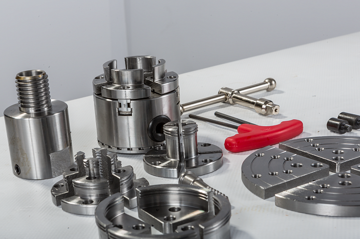 Токарный патрон, диаметр 70 мм, присоединительная резьба 1х8''TPI, комплект сменных кулачков, адаптер с 1х8''TPI на M33х3.5, зажимной ключ под квадрат, делительное приспособление на патроне, винтовая вставка, ключ шестигранный, кейс.